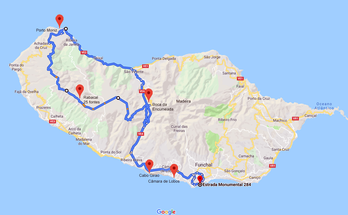 Camara de Lobos - Fennsík - Porto Moniz útvonal - Google